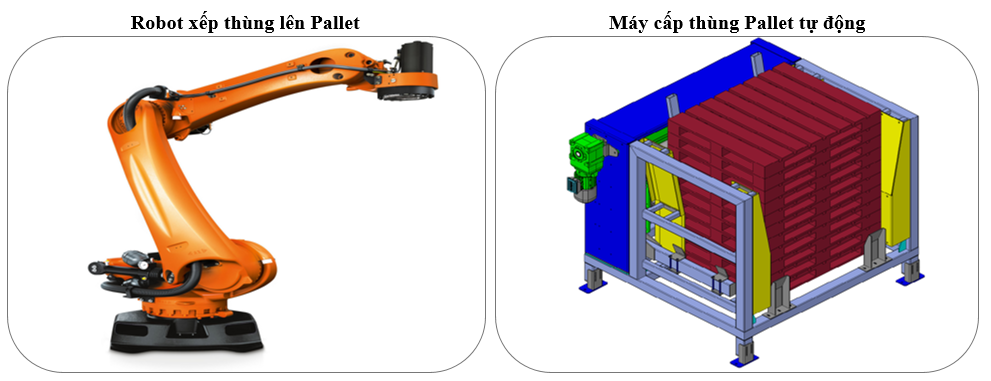 Xem chi tiếtDây chuyền đóng thùng, xếp và quấn màng pallet tự động