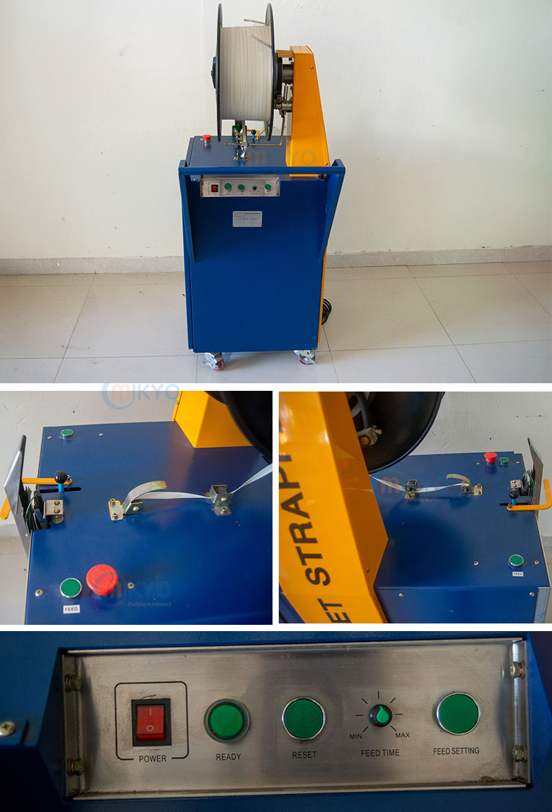 The pallet strapping machine will automatically stop and go into standby mode when you do not operate the machine for 60 seconds, helping to save electricity. Fast strapping speed, only takes 2 seconds to strap around the pallet, saving packaging time, creating high production efficiency. With genuine pallet strapping machines, there is high durability, low noise, low damage rate, suitable for all working environments. This is a specialized strapping machine for Pallets, with outstanding features in the most effective Pallet strapping ability.
